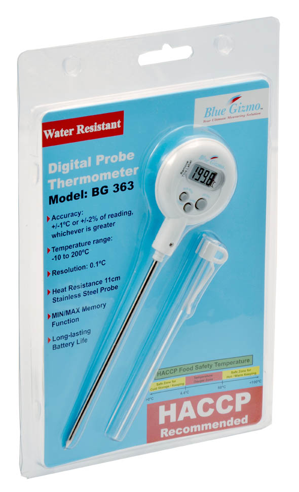 Digital Probe Thermometer(BG366) Digital Probe Thermometer(BG366) Blue Gizmo Code: BG366 • Range -10°C to +200°C • Battery Included • Water Resistant • ± 1 °C or ± 2% of reading whichever is greater • Blister Pack Send email for best product price delivered all over Australia. ← BackThank you for your response. ✨ Name(required) Warning Email(required) Warning Post Code(required) Warning Message(required) Warning Warning. Submit Δ Share this: Share on X (Opens in new window) X Share on Facebook (Opens in new window) Facebook Like Loading...
